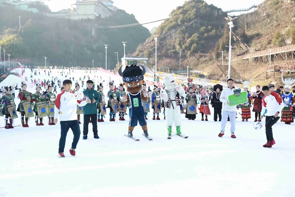 “村”字號表演隊伍走進滑雪場 供圖 黔東南州融媒體中心