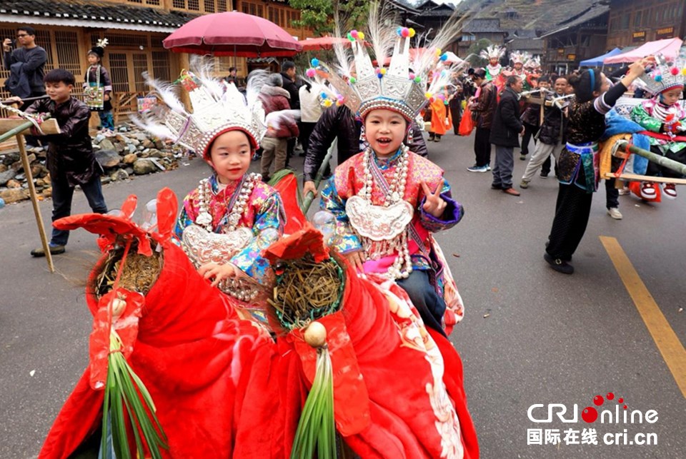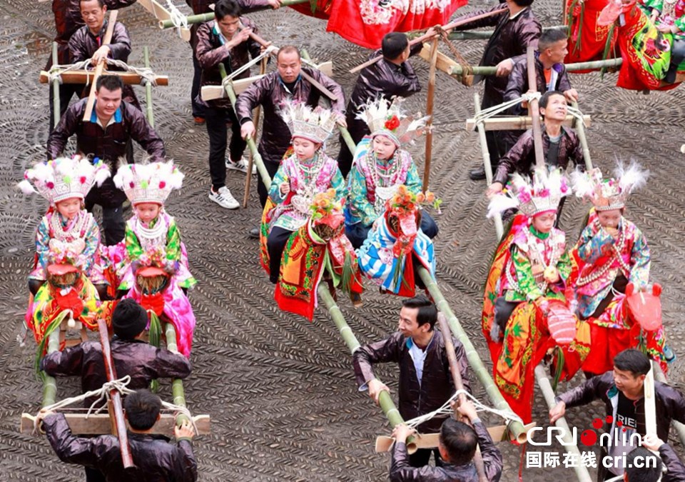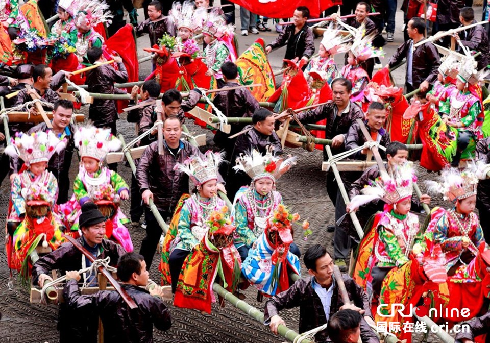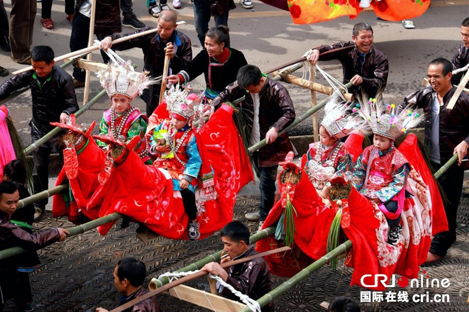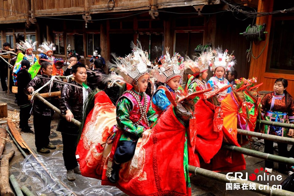 國際在線貴州消息(記者 楊展淩):2月23日(農曆正月初七),為期兩天的“抬官人”賀新春民俗活動在貴州省黔東南州黎平縣雙江鎮黃崗侗寨開幕,全村男女老幼都穿著精心準備的節日盛裝,笑語聲聲,一片喜氣洋洋的景象。