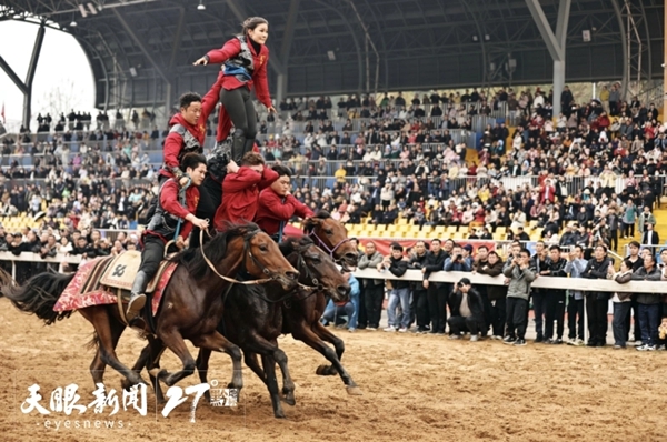 “村馬”賽馬場,騎手在進行馬術表演。楊文舒 攝(影像貴州)