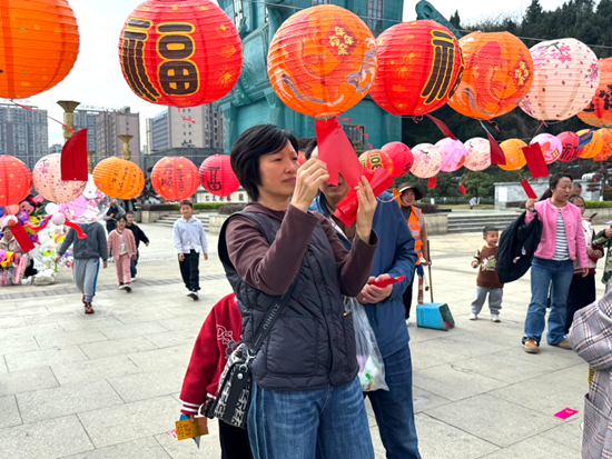 “來這裡體驗了猜燈謎、投壺、套圈活動,感覺很有趣,讓我感受到了傳統文化的魅力。”市民田佳佳笑著説。