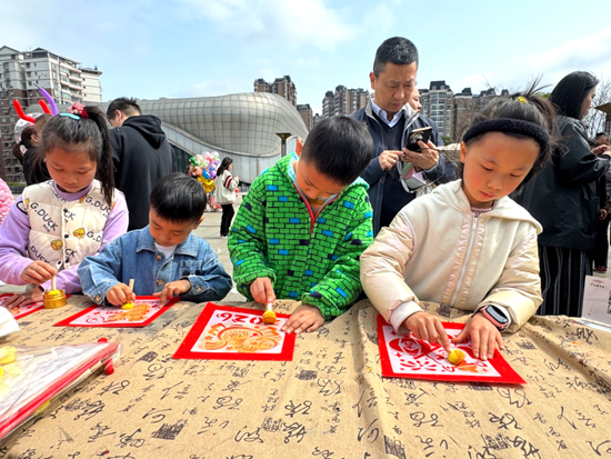 不遠處,仁懷博物館設置的互動區域同樣人氣爆棚,投壺、套圈、幸運轉盤等傳統遊戲吸引了眾多市民踴躍參與。在拓印體驗區,市民在工作人員指引下,輕敲慢拓,感受古老技藝的獨特魅力。