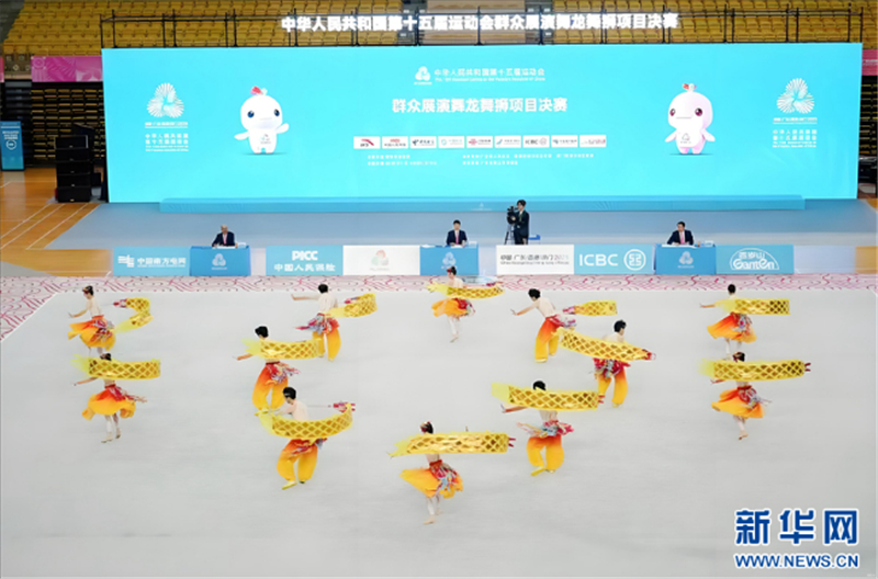 圖為全運會賽場湖北代表隊進行群眾展演舞龍舞獅項目決賽。(湖北省體育局供圖)新華網發