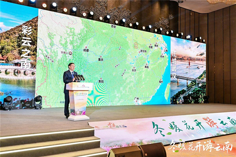 11月27日,由雲南省文化和旅遊廳主辦,聯合雲南航空産業投資集團有限責任公司、雲南省旅遊健康産業投資有限公司及昆明、麗江、昭通、德宏等7個州市文旅局共同舉辦的“冬暖花開遊雲南”2025年冬季市場行銷推廣活動在湖北武漢舉行。