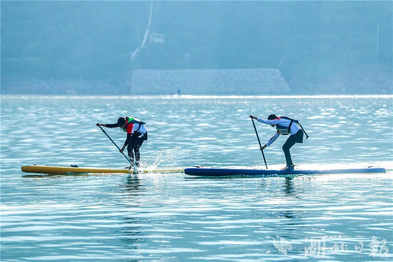 12月6日,槳板參賽選手在宜昌市秭歸縣水田壩鄉三峽橙谷·吒溪河景區水域揮漿爭先。當日,秭歸縣槳板公開賽在水田壩鄉三峽橙谷·吒溪河景區舉行,來自湖北省各地市的10余支代表隊、105名選手參賽。此次比賽是秭歸縣推動“體育+旅遊+産業”融合發展的一次生動實踐,借助三峽庫區優美的自然水域環境,不僅促進了當地水上運動的發展,也吸引了遊客觀賽,進一步提升了區域的知名度。(視界網 王罡 韋雪梅 攝)