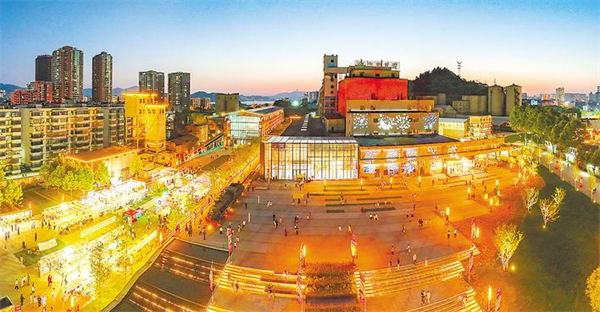 夜幕下的華新1907文化公園。(湖北日報通訊員 石勇 何戈 攝)