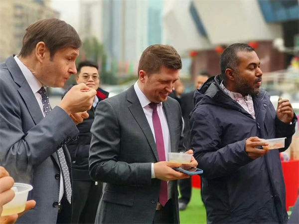 排骨藕湯和汪集雞湯是俄羅斯駐武漢總領事扎沃林的最愛,他舉著湯碗連連點讚,“兩道湯的味道都特別濃郁,口感特別好,所有菜品都很美味。”一旁的韓國駐武漢總領事館政務文化領事樸祥鎮也忍不住補充:要説最愛,排骨藕湯當屬首選!藕燉得軟糯綿密,入口即化,湯的味道也十分濃郁、鮮美。