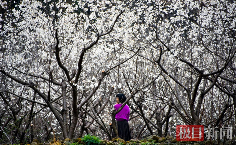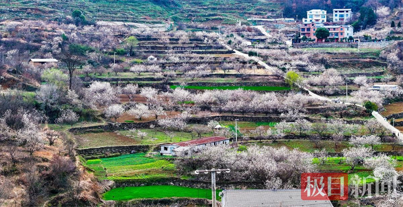 3月3日,湖北省十堰市鄖陽區茶店鎮大嶺山村櫻桃花盛開,每天吸引著許多遊客前來觀賞打卡拍照。鄂西北大山區鄖陽區347個村和社區數萬畝的櫻桃花開進入盛開期,也將進入春季觀賞櫻桃花的旺季。