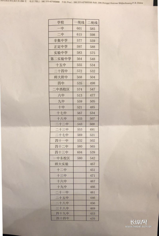石家莊市各高中錄取分數線。記者 董雲鵬 攝