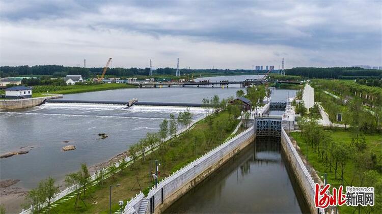 實現大運河京冀段互聯互通,關鍵在船閘。為了實現旅遊通航,香河縣在大運河東岸新建了曹店船閘。“船閘就像連接器”,7月6日,河北省水利工程局集團有限公司的項目負責人周志朋告訴記者,每座船閘之間,河道上下游水位都存在落差。當有船過閘時,通過閘室內的輸水廊道蓄水或泄水,讓閘室內水位與上游或下游水位齊平,從而實現船隻平穩通過。