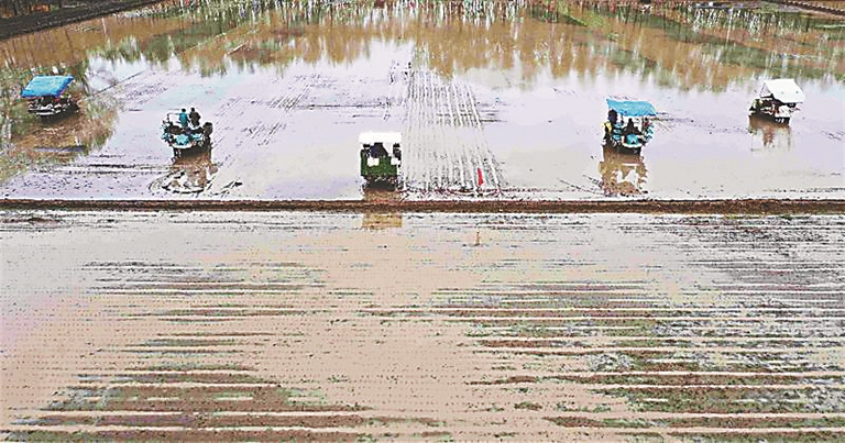 該農場有限公司的副總經理劉世水在插秧現場接受記者採訪時説:“從5月5日正式開始水稻插秧,有了高科技插秧機、配上高標準農田,讓水稻插秧能夠高效、高品質地‘加速度’作業。預計5月20日,51萬畝水田將全部插在高産期。”( 李紹斌 記者 吳樹江)