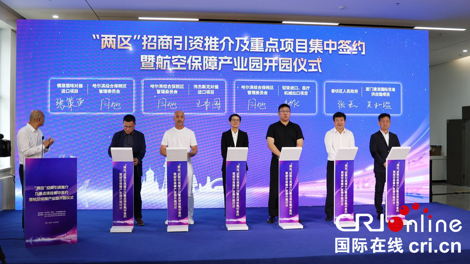 國際在線黑龍江消息(記者 于靈爽 實習生 劉若雅):為深入貫徹落實市委、市政府關於對哈爾濱綜合保稅區和哈爾濱臨空經濟區(以下簡稱“兩區”)實施一體化管理的決策部署,8月31日,“兩區”招商推介及重點項目集中簽約暨航空保障産業園開園儀式活動在哈爾濱臨空經濟區航空保障産業園成功舉辦。市委常委、副市長欒志成出席活動並致辭,市政府副秘書長尹承雲主持活動。