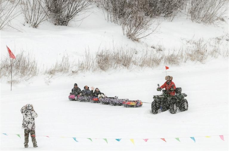 11月9日,初冬的漠河市北極村,雪花紛飛如詩。遊客坐馬拉爬犁、滑雪圈、騎冰上自行車,在銀裝素裹的雪原上體驗別樣冬日。在這片北國秘境,冰雪運動化作溫暖記憶,讓每個人沉浸于冬日的美好時光裏。(記者 張澍攝)