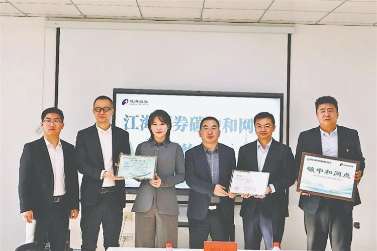 近日,黑龍江省首家“碳中和網點”授牌儀式在哈爾濱舉行。黑龍江省林業技術服務中心、省自然生態交易中心分別為江海證券頒發“龍江綠碳”登出憑證及“碳中和網點”牌匾。記者了解到,江海證券通過購買並登出足量的“龍江綠碳”,實現了該企業2025年度運營的碳中和。