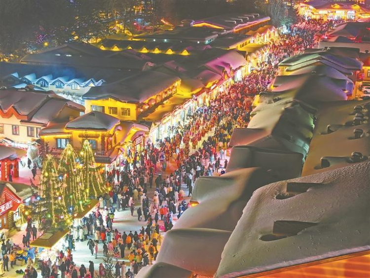 中國雪鄉景區沿河商業街的年貨大集上,千余種東北特産琳琅滿目;牡丹江工人文化宮廣場“集裝箱藝術集群”變身潮流打卡地,實景演藝“雪城秀”日均吸引遊客超3000人次。針對本地市民、屬馬及姓名含“馬”遊客、家庭遊客及俄羅斯入境遊客的專屬福利,精準激活多元消費。