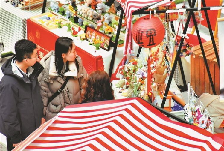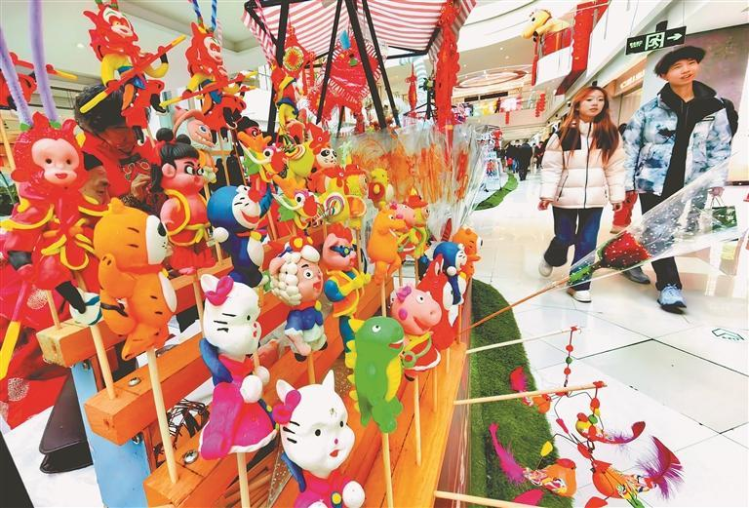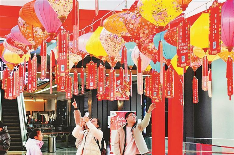 3月1日,哈爾濱市南崗區一家商場內,市民在觀賞綵燈、猜燈謎,打卡拍照。猜中謎底的人可以獲得一件小禮品。商場內還設有民俗手工藝品展,人們可以觀看糖畫、面塑等手工藝品的製作過程,了解非遺的傳承與創新。正月十五元宵節臨近,哈爾濱市各商場張燈結綵,舉辦豐富多彩的活動,迎接佳節的到來。(記者 蘇強攝)