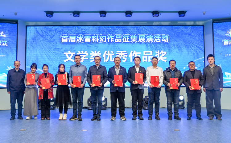 現場播放了首屆冰雪科幻作品徵集展演活動優秀作品集錦視頻,每一幀畫面、每一個故事,都藏著創作者對冰雪的熱愛、對科幻的思考,更藏著對龍江這片土地的深情。現場還為優秀科幻文學作品和優秀科幻短視頻作品獲獎者代表頒獎。