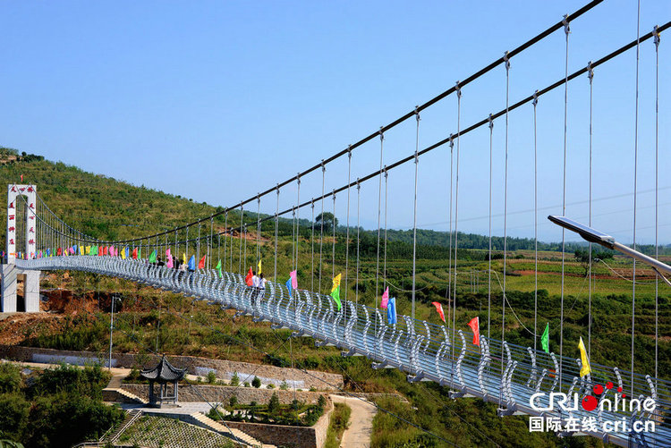 澠池柳莊“天心”玻璃吊橋全貌(侯繼光 攝)