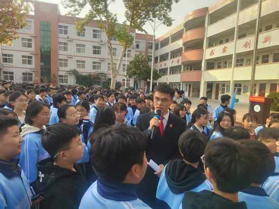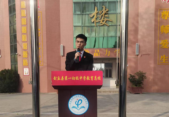 封丘縣法院馮村法庭庭長張輝為同學們上法治教育課 攝影 司想麗