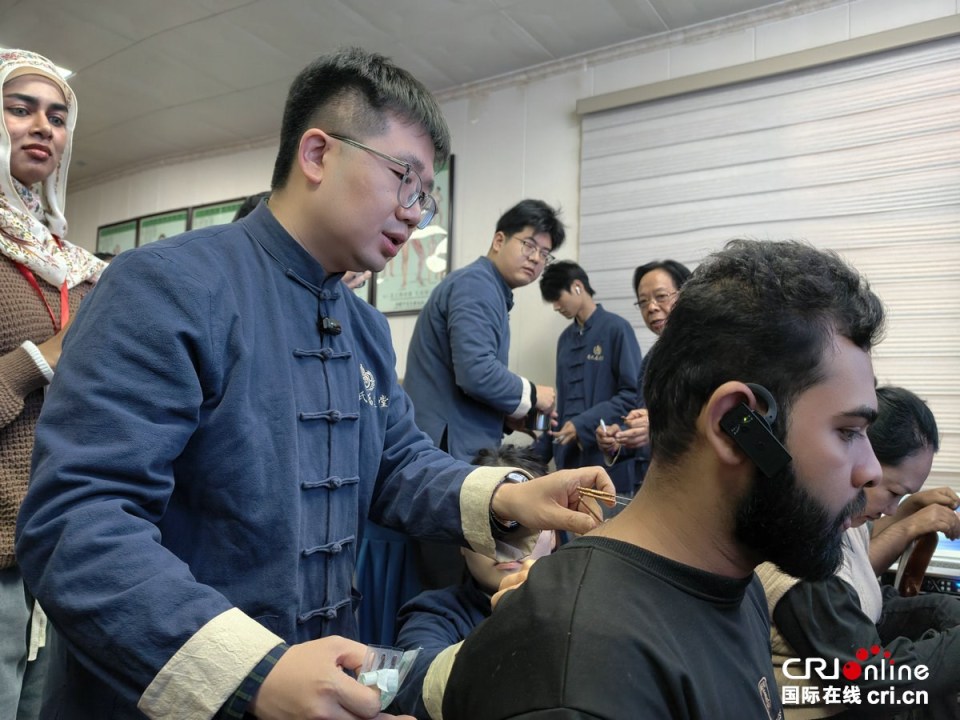 在體驗了針灸、拔罐、葫蘆灸等一整套中醫適宜技術套餐後,來自摩洛哥的藝詩則是興奮地跟家人分享了這一經歷。“我非常喜歡中國文化,這次我體驗了針灸、拔罐和葫蘆灸。我給我的媽媽分享了拍攝的視頻,她對我這次的經歷很感興趣,也想以後有機會跟我一起再來體驗。中醫值得推薦給更多人來體驗。”她説。