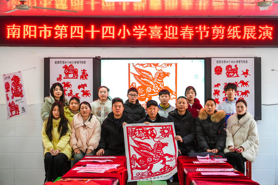 2月9日,在位於南陽市臥龍區的南陽市第四十四小學校內,年味濃郁、暖意融融,一場非遺剪紙迎新春主題活動熱鬧開展。南陽市非物質文化遺産剪紙項目傳承人呂登閣與師生們一起創作生肖馬主題剪紙作品,用獨具韻味的非遺剪紙,喜迎馬年新春。
