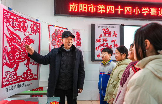 “學校把傳統年俗和非遺帶進課堂,讓學生在動手實踐中感受春節的文化底蘊,以馬年剪紙傳遞新春祝福,培養耐心與創造力,讓非遺技藝在少年一代中傳承。”南陽市第四十四小學校校長韓進奇表示。(文 王小軍 錢鑫)