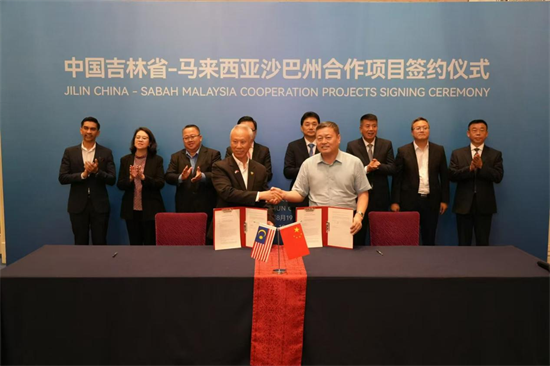 華瑞參業董事長金立華(前排右)與馬來西亞沙巴州政府、沙巴中國總商會簽約合作項目