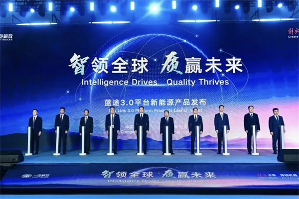 2025年,“解放”不僅在經營品質上實現突破,更在綠色智慧轉型中搶佔先機。高效油冷電驅橋、新能源輕量化等關鍵技術的突破,讓解放新能源牽引整車性能持續優化;解放J6P 6×4純電動牽引車獲CQC商用車産品碳足跡證書,標誌著解放公司邁入全生命週期碳管理新階段;隨著“藍途3.0”平臺新能源産品重磅發佈,一汽解放驅動行業向綠色化、智慧化轉型升級迎來又一創新里程碑。