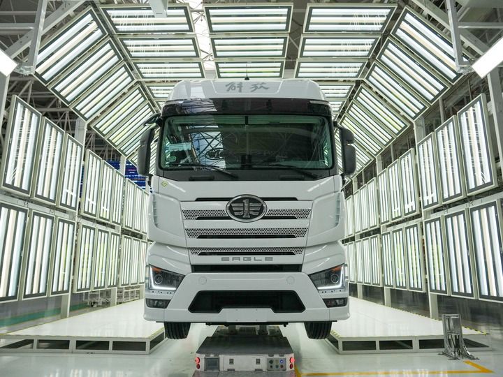 2026年1月4日,在一汽解放J7整車智慧工廠,車輛等待下線。 新華社記者 張楠 攝
