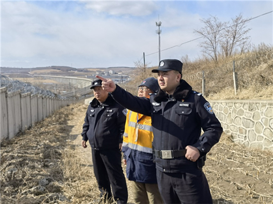 與熱鬧的站區不同,鐵路線路上多了幾分寂靜,卻同樣藏著不為人知的堅守。大風天氣裏,民警唐瑞與同事正沿著鐵路沿線徒步開展安全巡查。50多公里的鐵路沿線穿越村莊、學校、橋梁、隧道等重點區域,每一段都必須走到、看到、檢查到位。兩人深一腳淺一腳地前行,不時停下腳步,仔細檢查防護欄是否牢固、防護網是否破損、有無人員或牲畜誤入防護區域,全力防範各類安全風險。