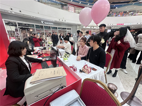 日前,延吉市民政局在延吉萬達廣場一樓創新設立首個商場婚姻登記臨時辦證點,將政務服務融入商業場景,15對新人在浪漫氛圍中沉浸式體驗“登記服務+打卡留念”的幸福瞬間。此舉不僅極大方便了市民就近辦理,更打破了傳統“行政式登記”模式,實現公共服務與“甜蜜經濟”的有機融合。