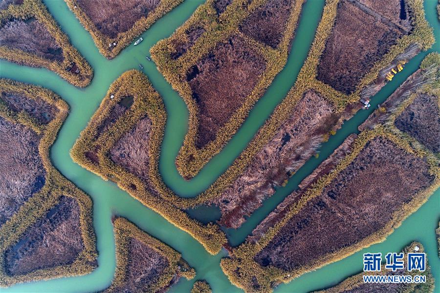 12月2日在江蘇省宿遷市泗洪縣洪澤湖濕地拍攝的冬日景色。