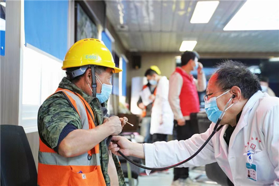 “我們邀請南京市城南醫院的醫生護士在項目設置‘公益檢測點’,為大家進行核酸檢測和健康體檢。”項目安全員余明富説,“我們還設置了快遞消殺點和防疫物資領用點,用看得見的舉措保障大家的日常生活。”同時,項目在施工現場和工人生活區醒目位置張貼風險點以及地方疫情防控指揮部的最新通知,實時做好宣教工作,讓工人們從思想上“緊繃”起來,同心協力抗擊疫情。