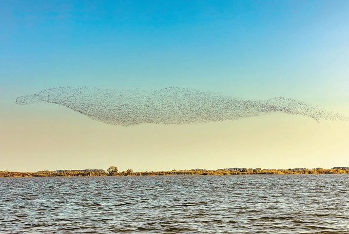 11月19日,泗洪縣洪澤湖濕地保護區雙溝段,數萬隻越冬候鳥在空中翱翔,甚是壯觀。李佳 攝