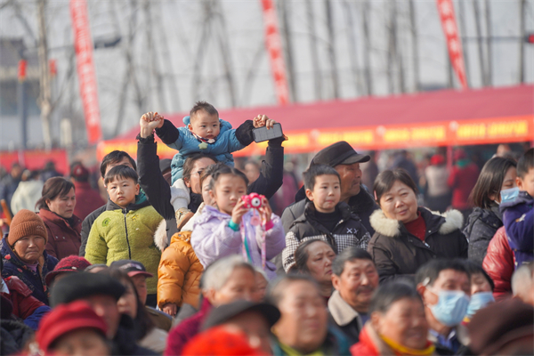 舞臺文藝演出將活動氛圍推向高潮。開場舞《盛世歡歌》喜慶熱烈,點燃現場熱情;經典曲目《盱眙之戀》引發全場共鳴,台下群眾齊聲哼唱,鄉音鄉情愈發濃厚;黃梅小戲《誰請客》展現龍蝦産業賦能鄉村振興新風貌,小戲《孩子孩子》弘揚孝老愛親傳統美德;川劇絕活《變臉》搭配噴火絕技驚艷亮相,贏得全場陣陣掌聲與歡呼聲。“節目精彩又接地氣,濃濃的年味兒太治愈了。”現場村民的話語道出了大家的共同心聲。