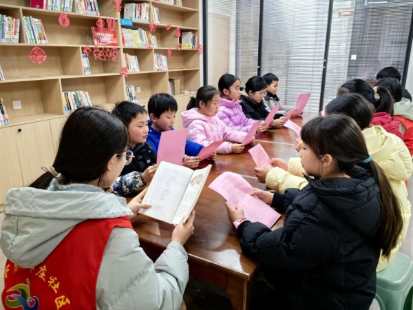 在鄒莊社區農家書屋內,大學生志願者用生動形象的語言,為孩子們講述了元宵節燃花燈、吃元宵、猜燈謎等傳統習俗,孩子們聽得津津有味,仿佛穿越千年,親歷那段古老時光。隨後,小小志願者走上臺前,聲情並茂地領讀《青玉案·元夕》《正月十五夜燈》等經典詩詞,稚嫩的童聲伴著古韻悠揚,詩詞中蘊含的團圓之意、燈月交輝之美,悄然浸潤著每一顆童心。
