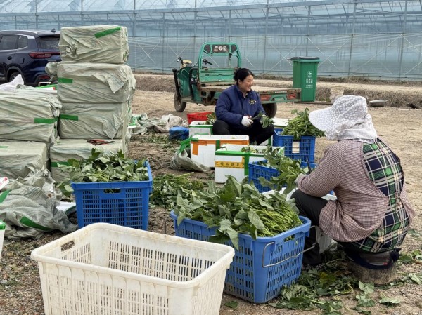 春和景明,萬象更新。三月的南京市高淳區古柏街道鳳袁村,近百畝現代化蔬菜大棚裏暖意融融,一派熱火朝天的繁忙景象。十余名村民分工協作、幹勁十足,有的悉心整理菜苗,有的彎腰栽種長壽菜,有的忙著采收菠菜、芹菜、紫玉胡蘿蔔,還有的穿梭田間整地備耕……忙碌的身影勾勒出春日裏最動人的鄉村振興畫卷。作為村裏盤活閒置資源、帶動村民增收的重點項目,鳳袁村設施蔬菜基地以“合作社建棚、企業運營、村民受益”的模式,讓閒置土地“活”起來,讓村民腰包“鼓”起來,村集體經濟“強”起來。
