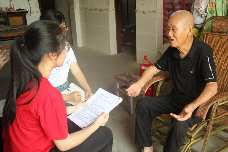 志願者與老黨員劉元生(右一)交談 供圖 東華理工大學