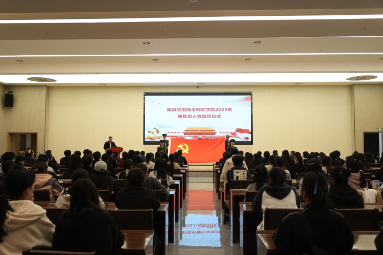 為進一步加強黨員黨性教育,激勵新黨員堅定理想信念,11月11日,南昌應用技術師範學院舉行新黨員入黨宣誓儀式。學校黨委委員、副校長鄭行忠,黨委委員、紀委書記、組織部部長楊冬,各二級黨組織書記,黨支部書記,組織員,今年發展的新黨員以及入黨積極分子代表參加。儀式由楊冬主持。