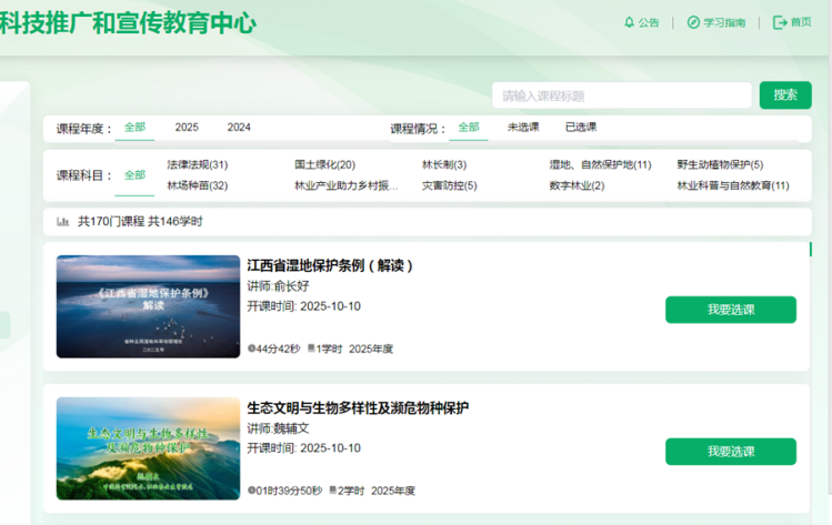 江西省林業科技推廣和宣傳教育中心依託“江西林技通”雲平臺,升級打造林業專業技術人才繼續教育線上陣地,整合行業優質課程資源,設置生態保護、産業培育、災害防控等特色課程模組,為全省林業人才提供“隨時學、隨地學”的便捷提升渠道。截至2025年10月,全省已有3700余名林業專業技術人才通過平臺完成繼續教育,專業素養與實操能力得到顯著提升,為林業産業可持續發展築牢人才根基。