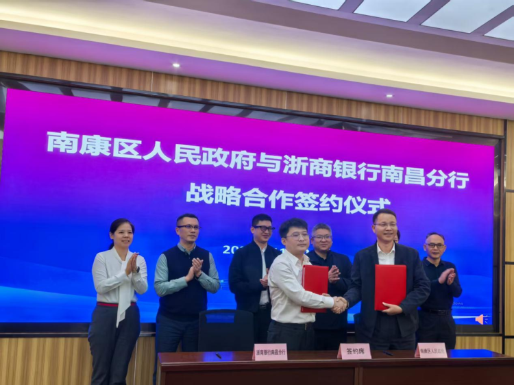 活動現場,浙商銀行南昌分行與南康區人民政府正式簽署戰略合作協議,雙方達成200億元的意向合作額度,標誌著銀政合作邁向更深層次。