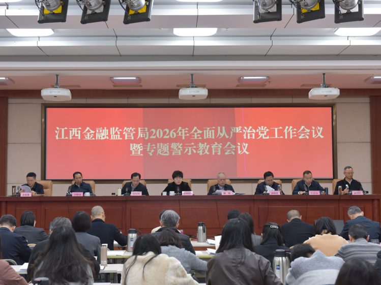 1月28日,江西金融監管局召開2026年全面從嚴治黨工作會議暨專題警示教育會,落實金融監管總局2026年全面從嚴治黨工作會議暨專題警示教育會精神,總結2025年局系統全面從嚴治黨工作,部署2026年重點工作。江西金融監管局黨委書記、局長金利佳出席會議並講話,黨委委員、紀委書記萬曉春傳達二十屆中央紀委五次全會精神和2026年全面從嚴治黨工作會議暨專題警示教育會精神並講話,江西金融監管局黨委委員、二級巡視員熊偉主持會議。江西金融監管局領導班子成員出席會議。