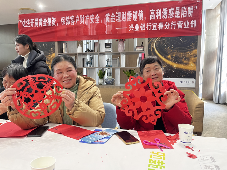宜春分行營業部在網點客戶活動中心舉辦新春剪窗花非遺文化活動,創新將傳統節日體驗與金融消保知識普及深度融合。活動現場,專業老師手把手指導客戶剪制福字、生肖等吉祥窗花,紅紙翻飛間洋溢著濃厚的新春節日氛圍。工作人員同步開展金融知識宣講,用通俗易懂的語言結合典型案例,講解反詐、防非法集資、個人金融信息保護等實用內容,現場解答客戶理財投資、銀行卡安全等問題,讓客戶在沉浸式的新春文化體驗中提升風險防範意識、築牢金融安全防線。