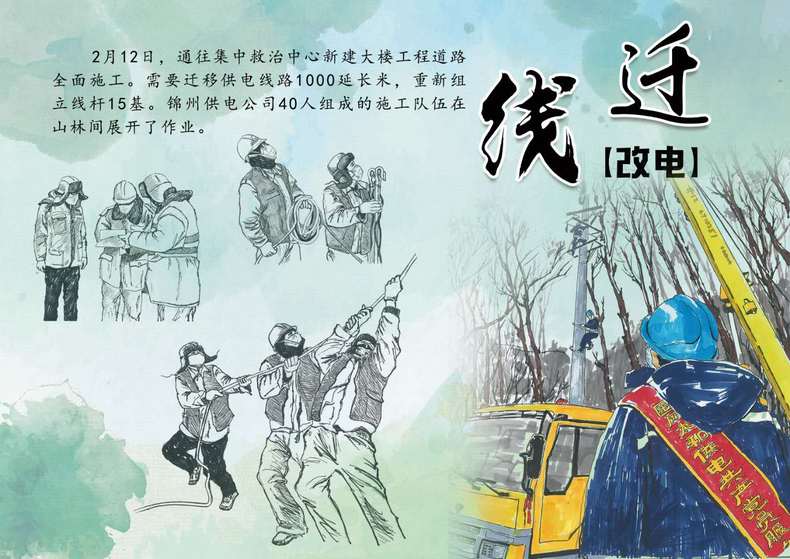 漫畫“遷線改電”供圖 國網錦州供電公司
