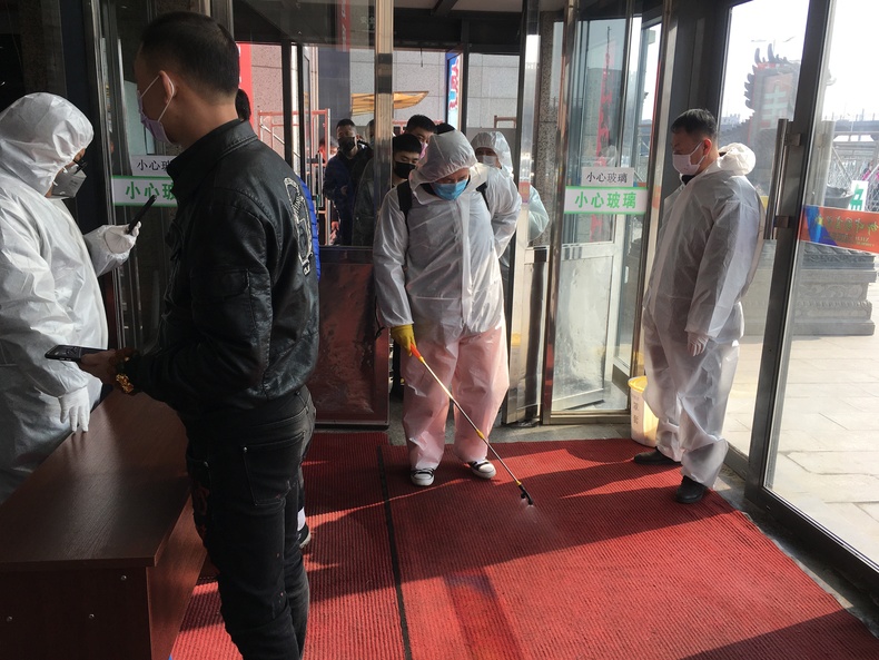 工作人員進行測溫、消毒等工作 攝影 于曉宇