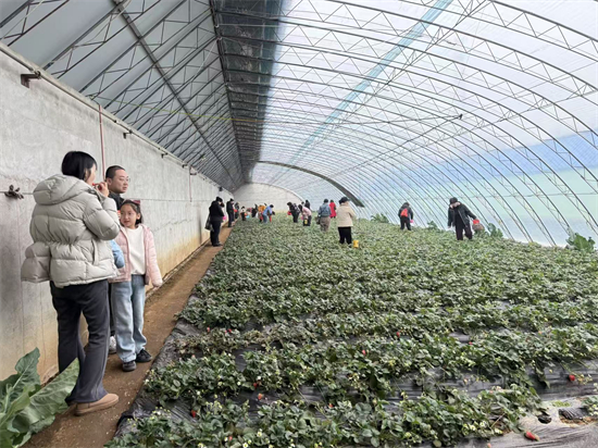 寒冬時節,大連市普蘭店區楊樹房街道趙家村源豐現代農業示範園區內暖意融融,一壟壟翠綠藤蔓間,“京郊小白”“冰糖心”等優質品種的草莓鮮紅飽滿,陣陣清甜香氣撲面而來。