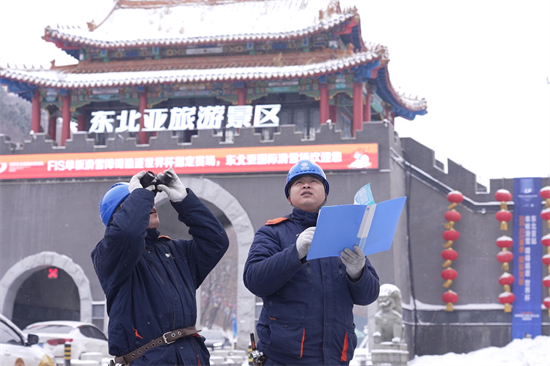 1月15日,在比賽供電保障現場,老遠就能看到醒目的黃色應急發電車,國網瀋陽供電公司清水街道供電所外線班的劉源、董浩正在發電車前研究著場館的線路佈局。劉源説:“我們從2025年12月23日接到這項任務起,持續利用‘無人機+智慧監控+人工’的巡檢方式,系統摸排了周圍相關供電線路。1月7日進駐滑雪場後,又逐一排查了滑雪場內的所有供電線路,確保排除一切安全隱患。”