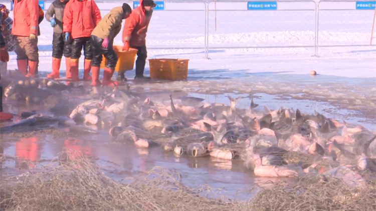 “出魚啦!”隨著一聲吆喝,瀋陽法庫縣財湖冬捕迎來今年第一網出魚。古法鑿冰、拉網起魚的傳統冬捕場景再現,千米大網被漁工合力拽出冰面,鮮活的花鰱、鯉魚騰躍而出,引得圍觀的市民遊客陣陣歡呼,近距離感受遼沈大地獨具特色的傳統漁獵文化魅力。