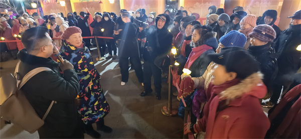 《在希望的田野上》《我和我的祖國》……一首首刻在DNA裏的歌。文化館合唱團的老師們剛起個頭,四面八方就涌入了合唱的聲音。舉著糖葫蘆的大爺、牽著孩子的媽媽、年輕的情侶……人人都成了“實力派”,歌聲在寒冷的冬夜裏匯成一股暖流。