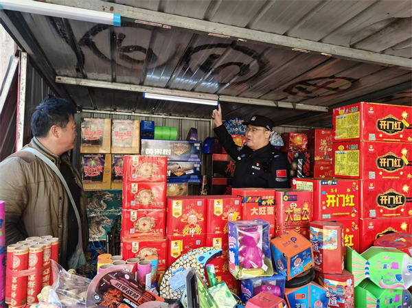 民警加大對人流密集部位、小區、煙花爆竹臨時銷售點等重點區域的巡邏頻次 供圖 丹東邊境管理支隊臨江邊境派出所