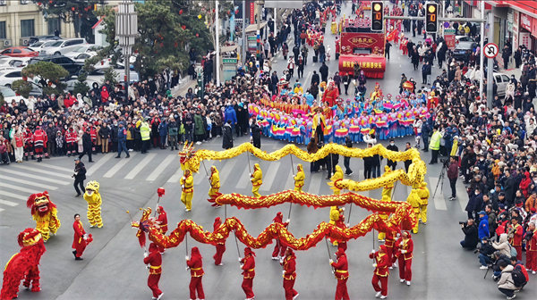 鏗鏘的鼓樂震天響,喜慶的秧歌扭起來,18支參演隊伍攜11輛特色花車依次登場,近千名演職人員用最具民俗風情的表演,為市民帶來一場沉浸式的文化體驗。從舞龍舞獅的威武靈動,到高蹺秧歌的妙趣橫生,從鼓樂齊鳴的氣勢恢宏,到雜耍表演的精彩美妙,一個個充滿鄉土氣息與文化底蘊的節目輪番亮相,讓沿途觀眾大飽眼福,掌聲、歡呼聲此起彼伏,讓這條1.3公里長的巡遊展演線路化作歡樂的海洋。
